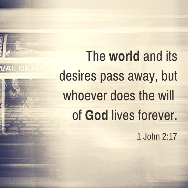 “Do not love the world nor the things in the world. If anyone loves the world, the love of the Father is not in him. (16)For all that is in the world, the lust of the flesh and the lust of the eyes and the boastful pride of life, is not from the Father, but is from the world. (17)The world is passing away and also its lusts; but the one who does the will of God continues to live forever.” (NASB2020)